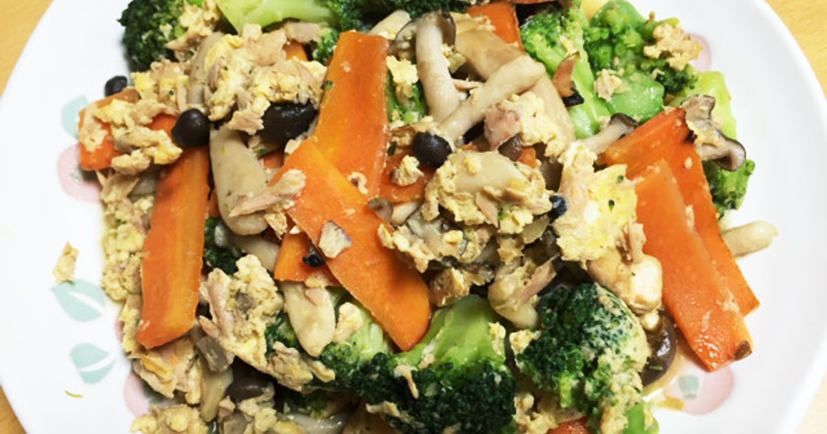 ニンジンは千切り、冷凍ブロッコリーは適当な大きさに切り、レンジでチン。